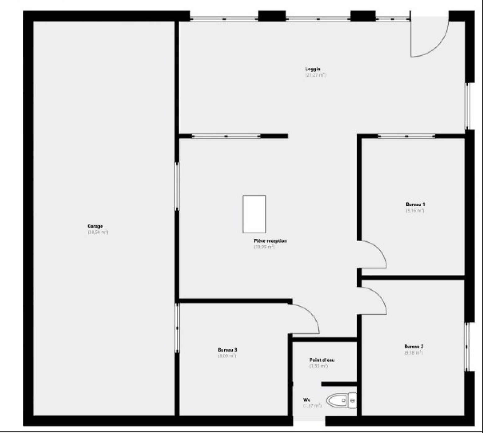 Trois bureaux indépendants (9,16 m² – 9,18 m² – 8,09 m²),