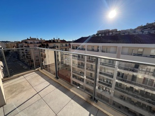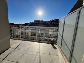 NICE QUARTIER NORD ARIANE, résidence récente, appartement de 62m2, trois pièces au 6ème étage avec ascenseur, séjour sortie sur la terrasse cuisne ouverte sur séjour( plaques et hotte), deux chambres, une salle de bain, wc séparé, un parking au sous sol