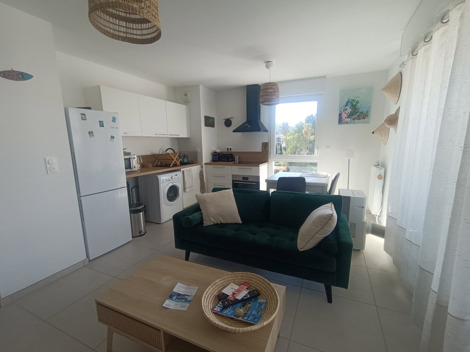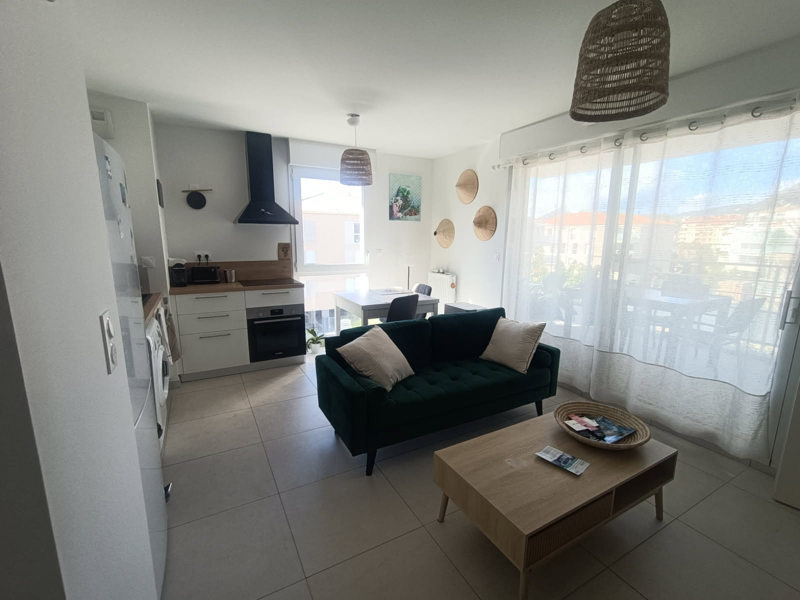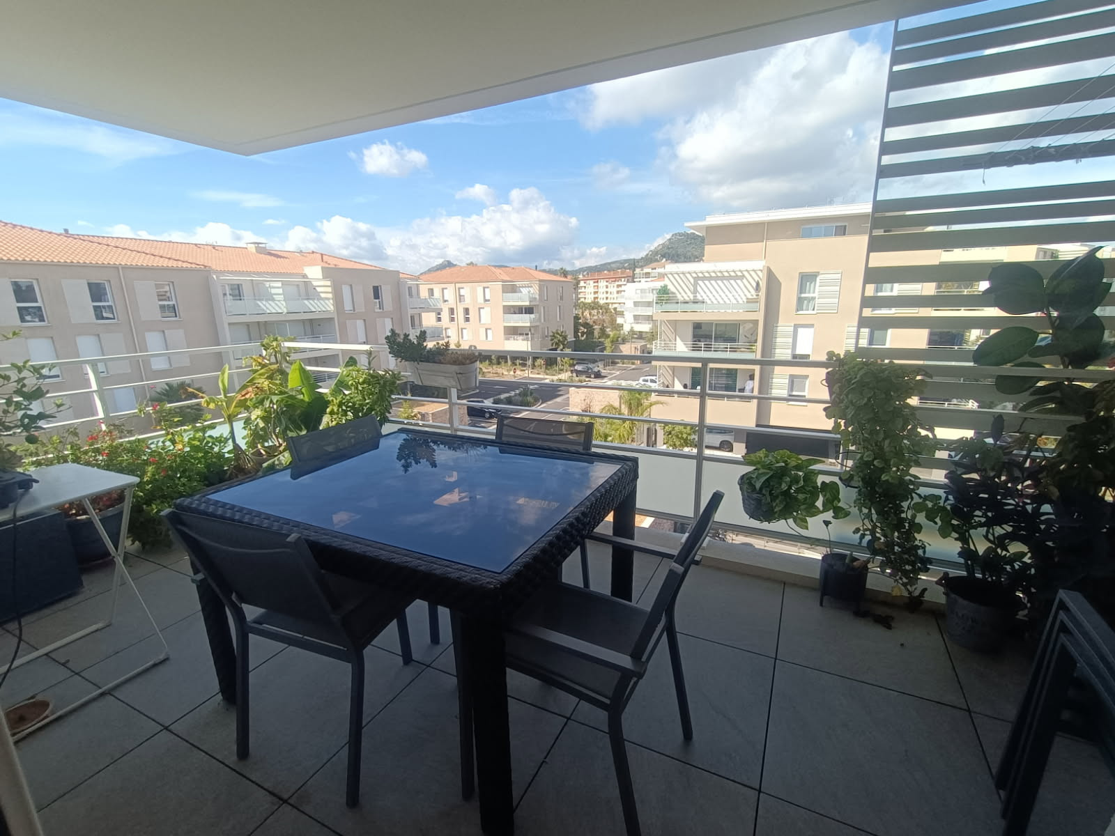 C307 Meublé - HYERES LES SENSORIELLES, au 03ème étage avecasceneur, bel appartement T2 MEUBLE de 40.09m² comprenant une entrée , un séjour avec cuisine ouverte ( aménagée et équipée plaque, hotte four, réfrigérateur ) de 21.14m², une salle d'eau avec WC, une chambre de 11.36m² Belle terrasse de 10.59m²