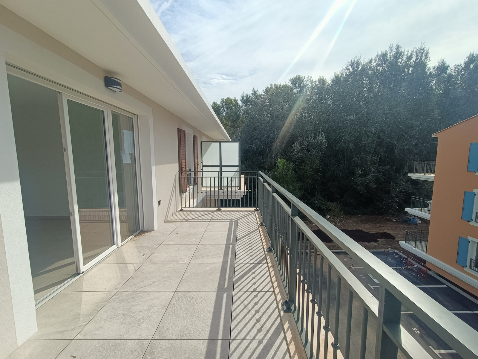 1208- COGOLIN - Au 02ème ET DERNIER étage avec ascsenseur Appartement T3 neuf de 63.14m² comprenant une entrée avec placard, un séjour avec cuisine aménagée et équipée ( plaque et hotte ) ouvert sur une terrasse exposée Sud Ouest de 18.83m², 2 chambres (12.30m² et 9.18m²), une salle de bains et un WC indépendant